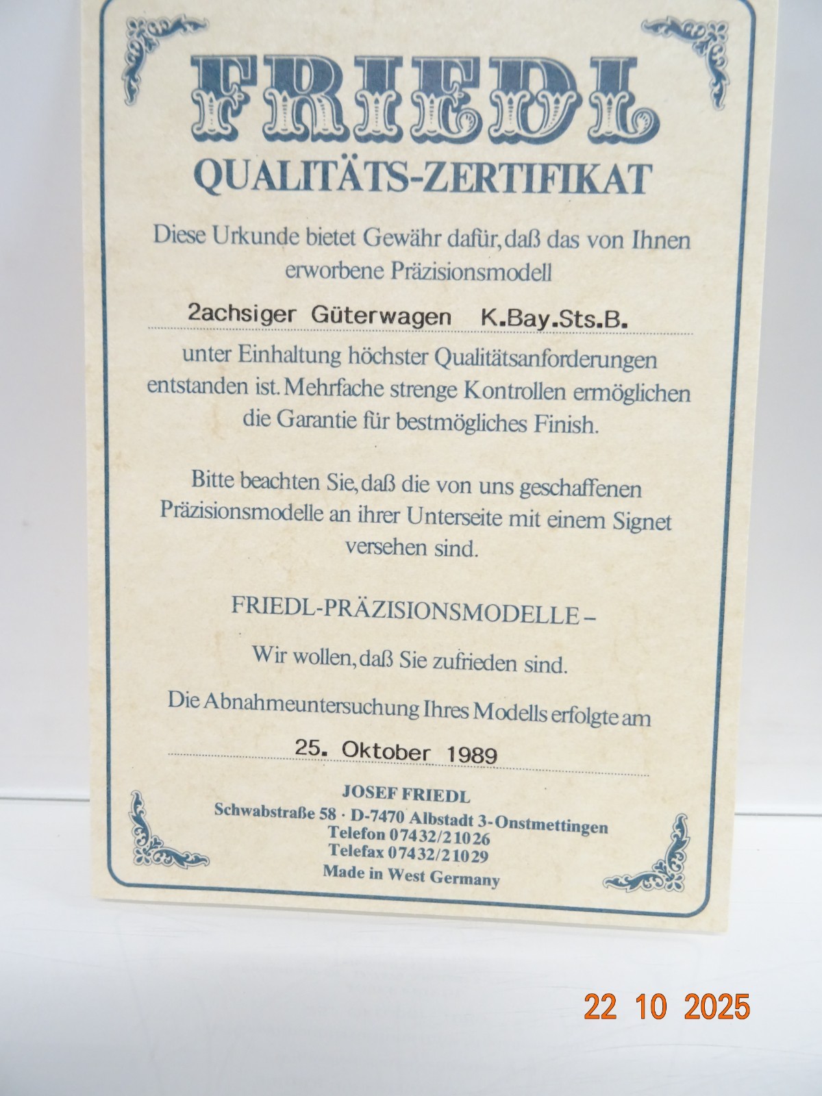 Friedl Spur 0 Messing Güterwagen 2achs. der K.Bay.Sts.B. in OVP