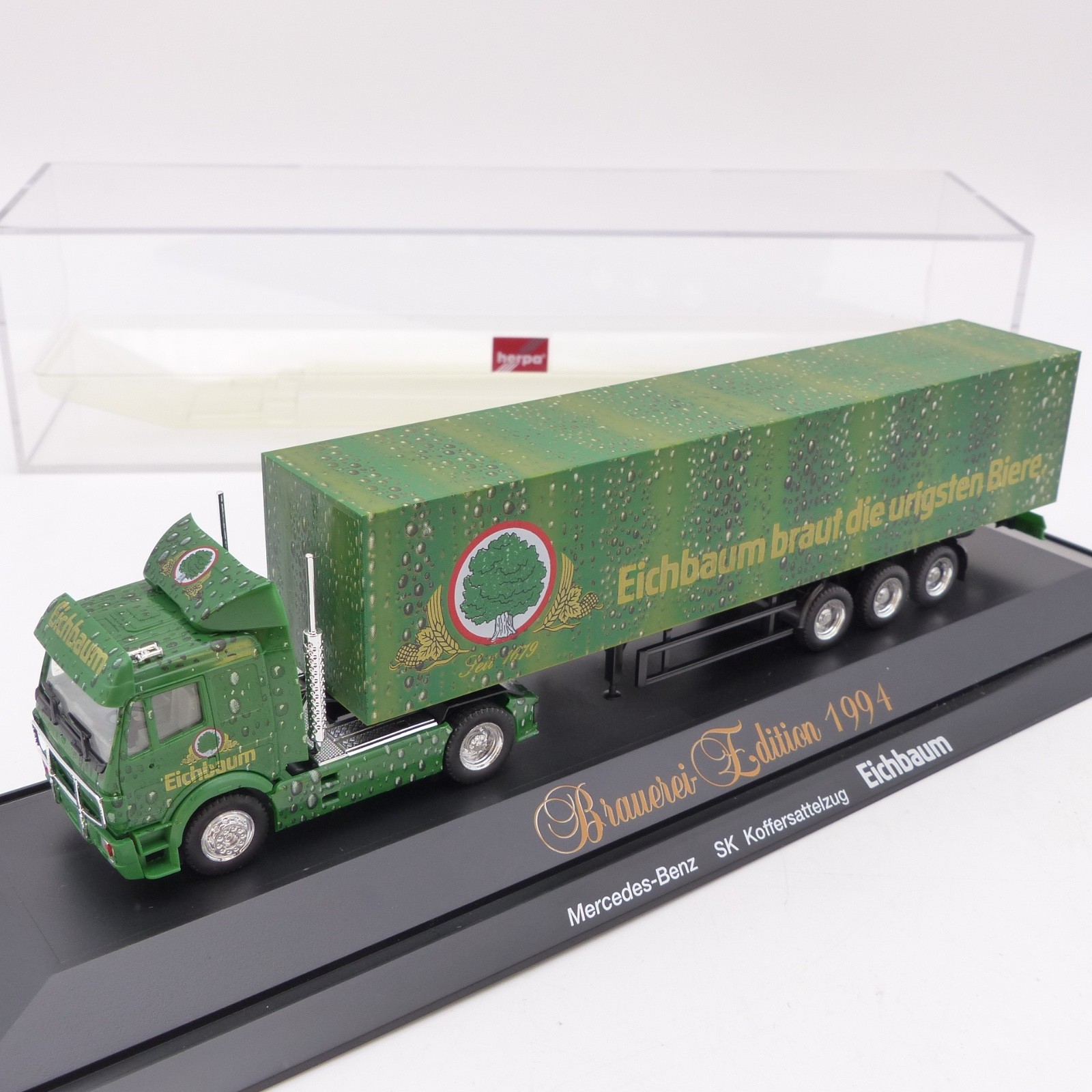 Herpa 1:87 181990 Mercedes SK Sattelzug Eichbaum in PC-Box