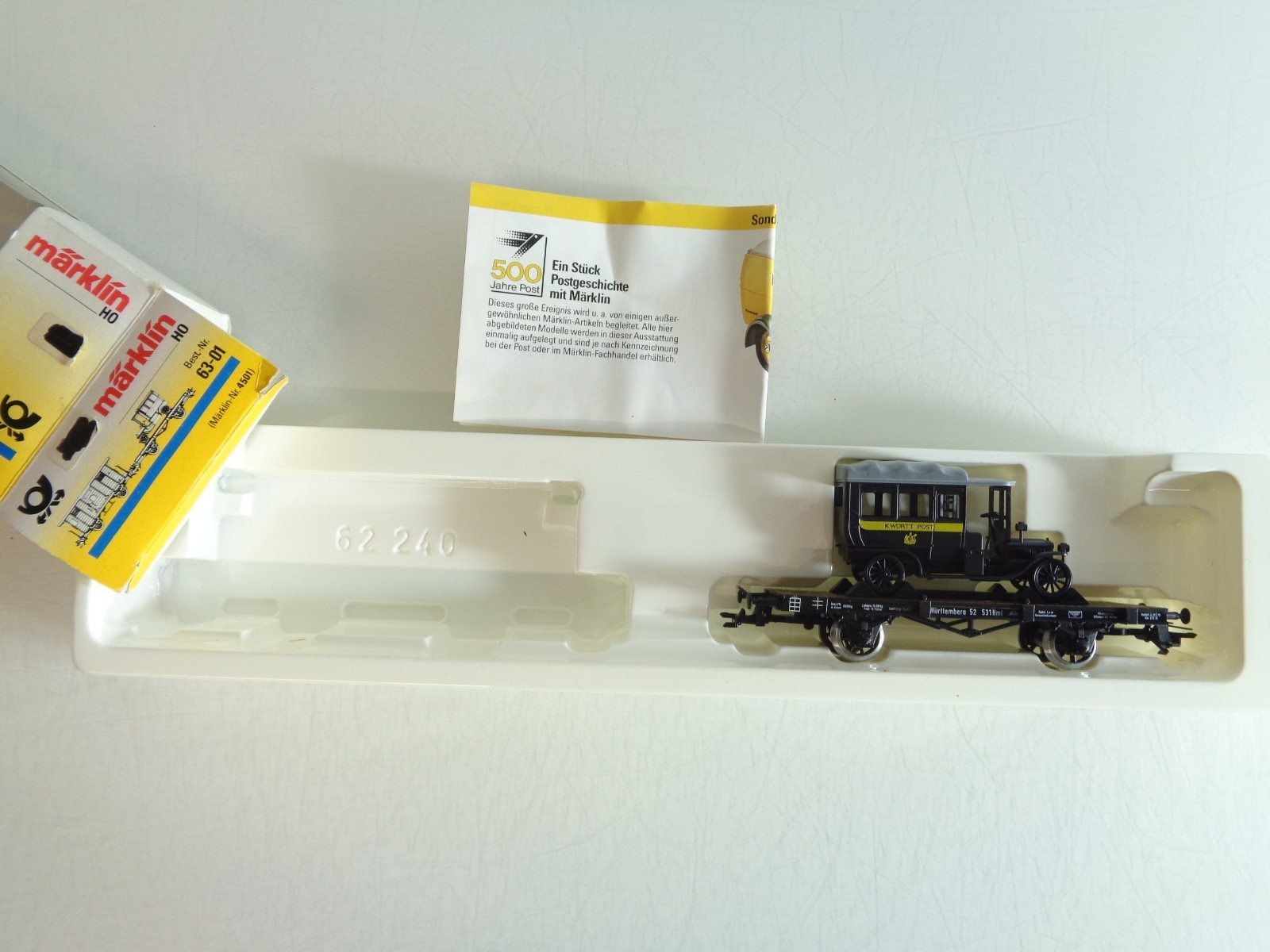 Märklin H0 4501 aus 63-01 Flachwagen mit LKW der K.Württ.Post in OVP