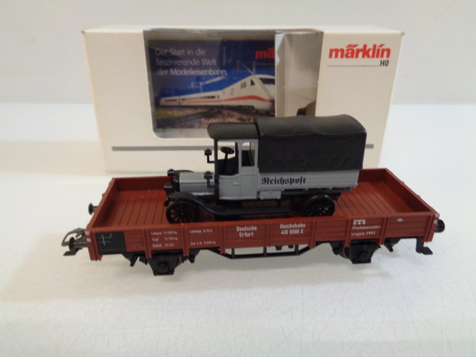 Märklin H0 Niederbordwagen mit LKW Oldtimer in OVP