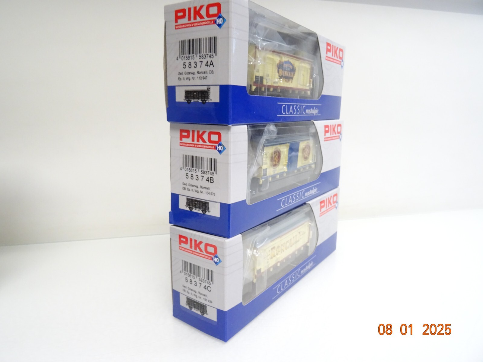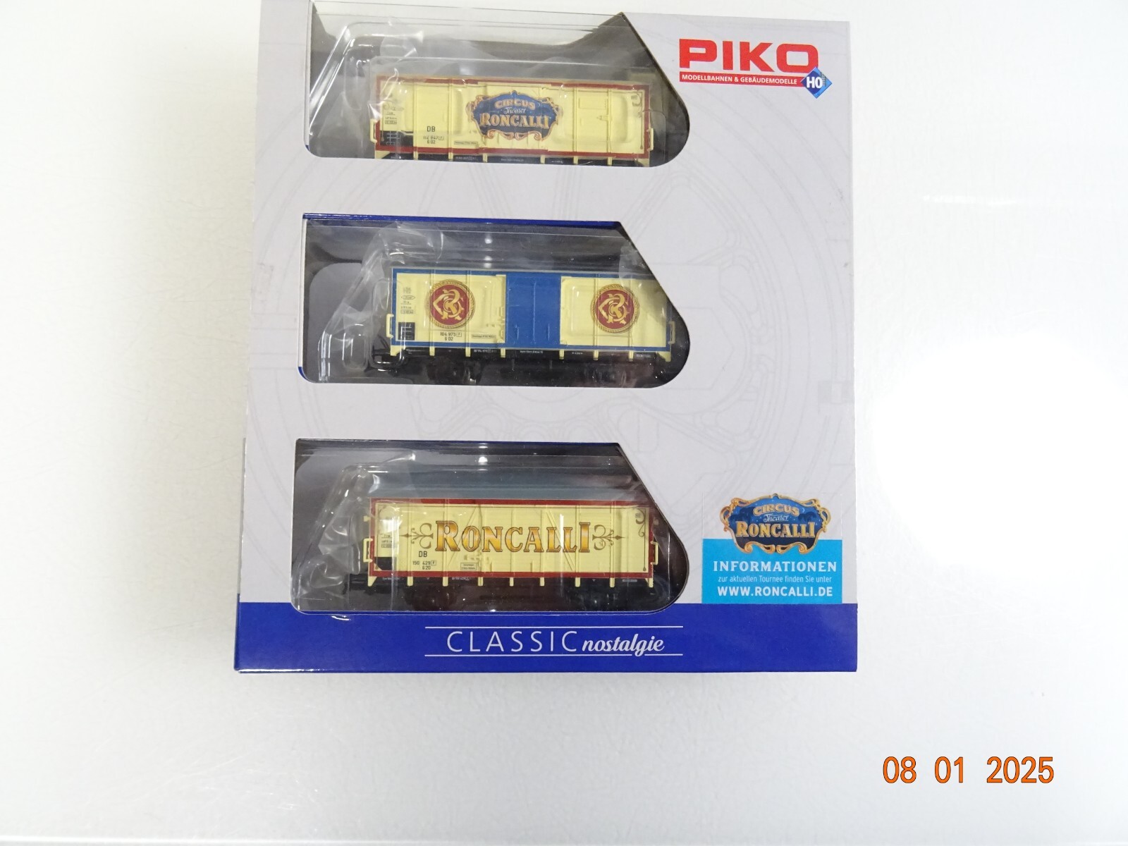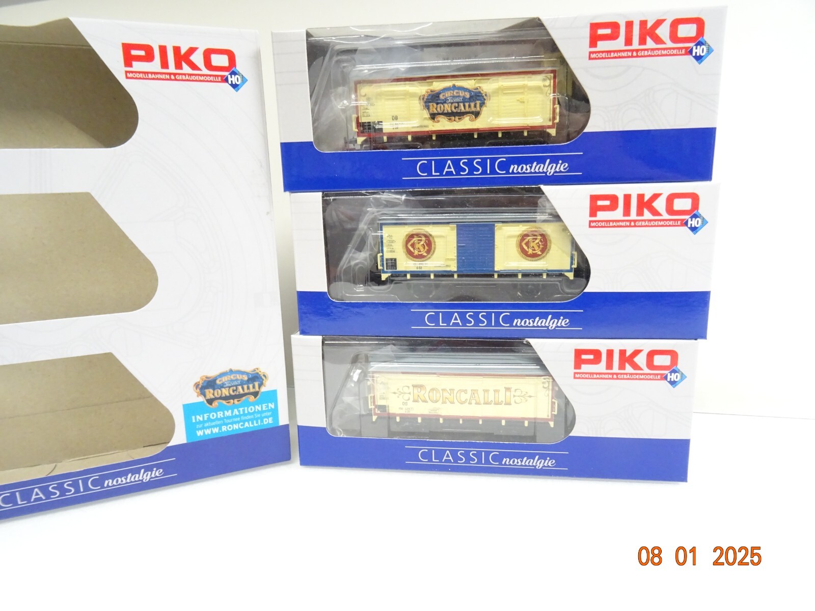 Piko H0 58374 A/B/C gedeckte Güterwagen Set 3 tlg Roncalli der DB in OVP