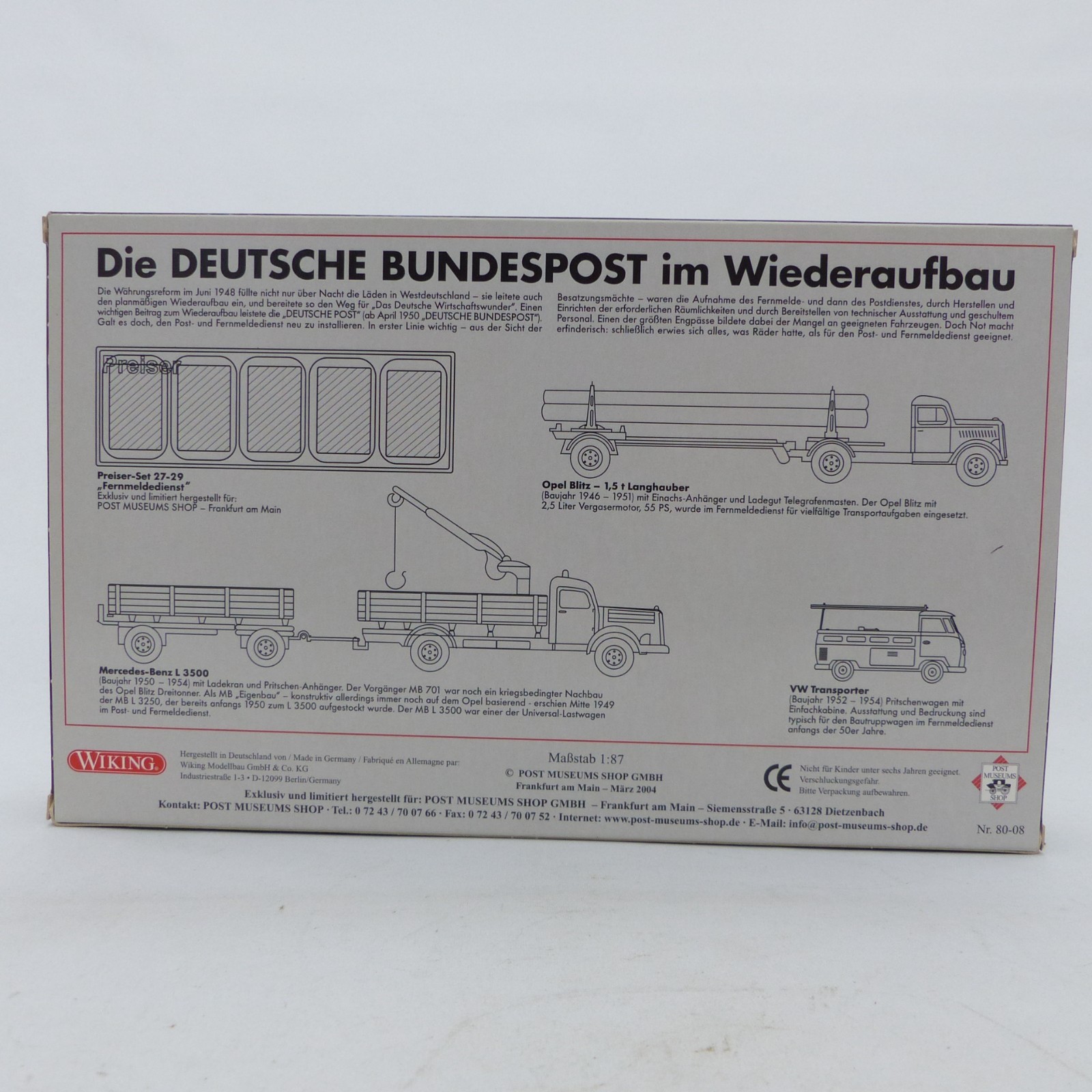 Wiking 1:87 PMS 80-08 Die Bundespost im Wiederaufbau Edition 2004 in OVP